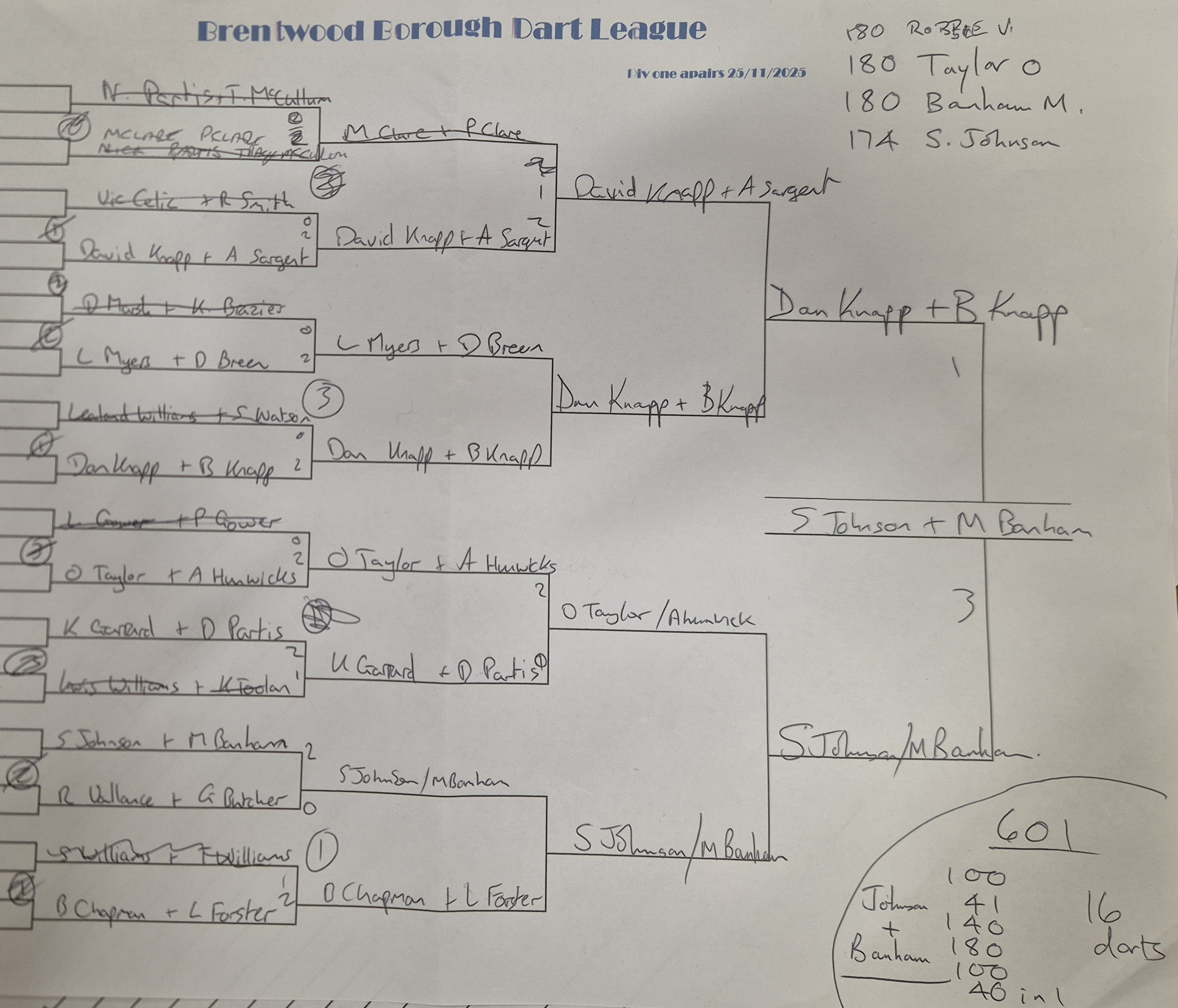 League Tables : Division 1 Singles : Division 1 Pairs : Division 2 Singles : Division 2 Pairs : Maximums : Checkouts : Best Legs : Results