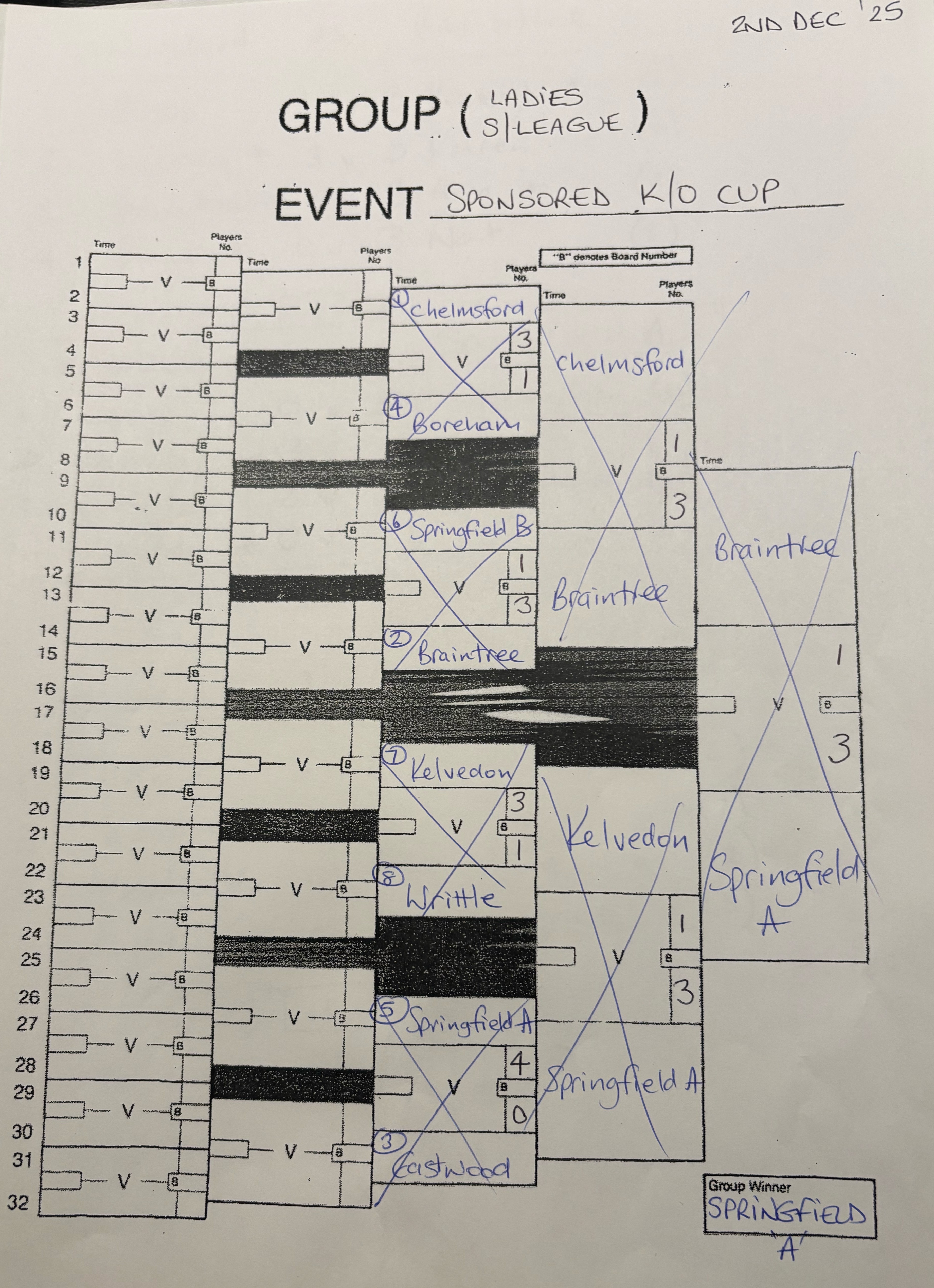Eastwood 1 Springfield A 5 Springfield B 1 Chelmsford 5