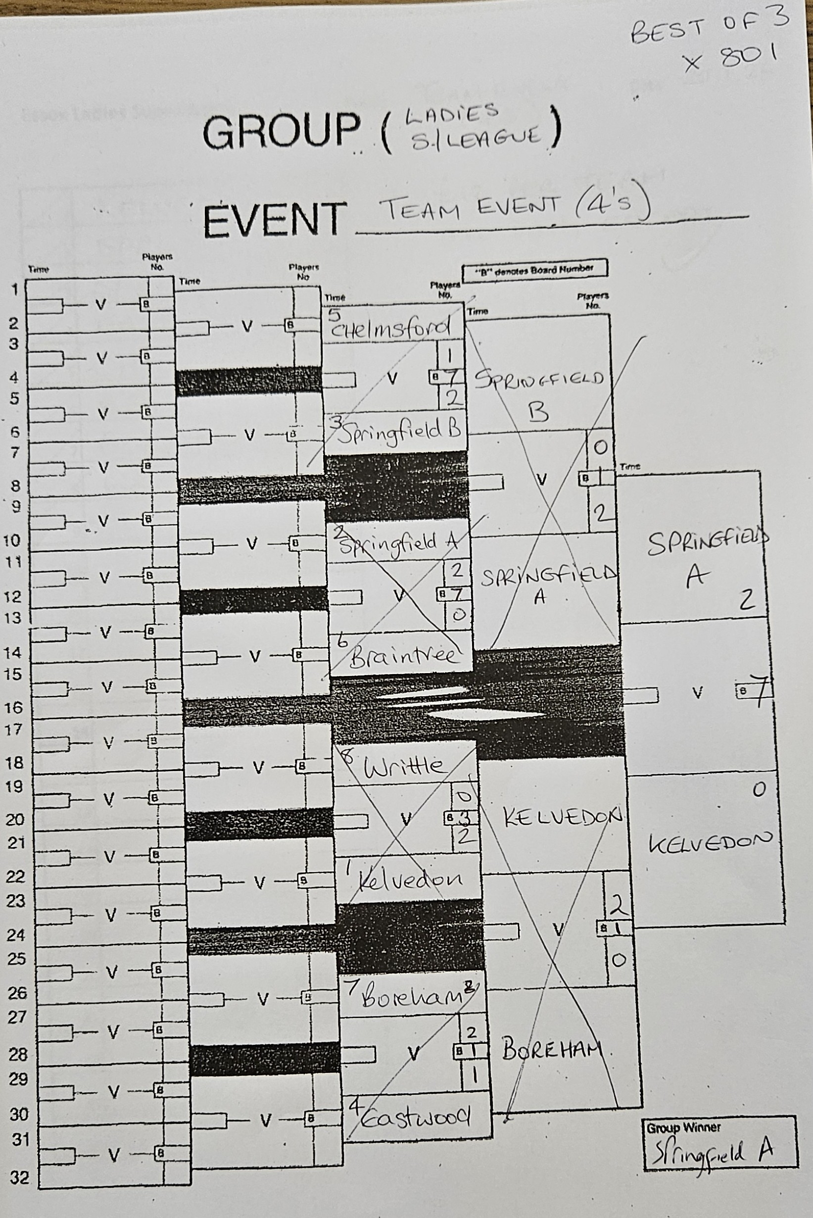 Eastwood 2 Braintree 4 Springfield A 4 Springfield B 2